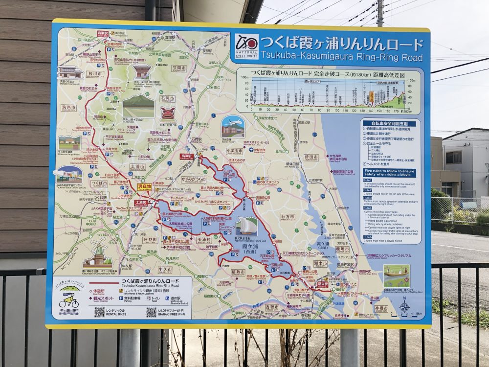 現在、廃線跡は「つくば霞ヶ浦りんりんロード」(茨城県道505号桜川土浦潮来自転車道線)として整備され、快適なサイクリングロードとして生まれ変わっています。「つくば霞ヶ浦りんりんロード」は潮来から続くサイクリングロードでその長さは180kmもあります。その約1/4が筑波鉄道筑波線の廃線跡です。