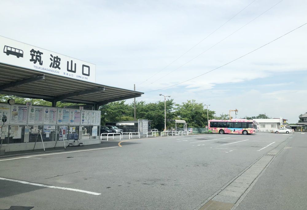 筑波山の玄関口であった筑波駅は、かつて多くの人で賑わっていました。駅前のバスターミナルは今も利用されています。駅前から筑波山方向に伸びる道路には、筑波山神社の鳥居が建てられており、現在もその面影を駅前通りに見ることができます。