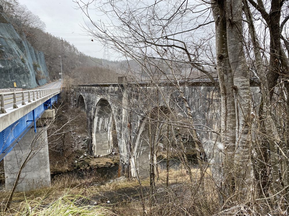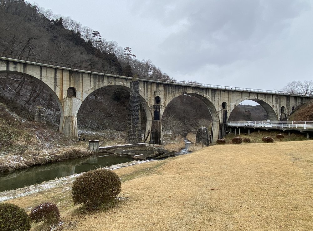 この路線のハイライトは、なんといっても「宮守川橋梁(通称:めがね橋)」です。現在使われているのは2代目ですが、そのすぐそばには、岩手軽便鉄道時代の橋脚が3基、ひっそりと佇んでいます。賢治が見上げ、物語の着想を得たのは、この初代の姿でした。