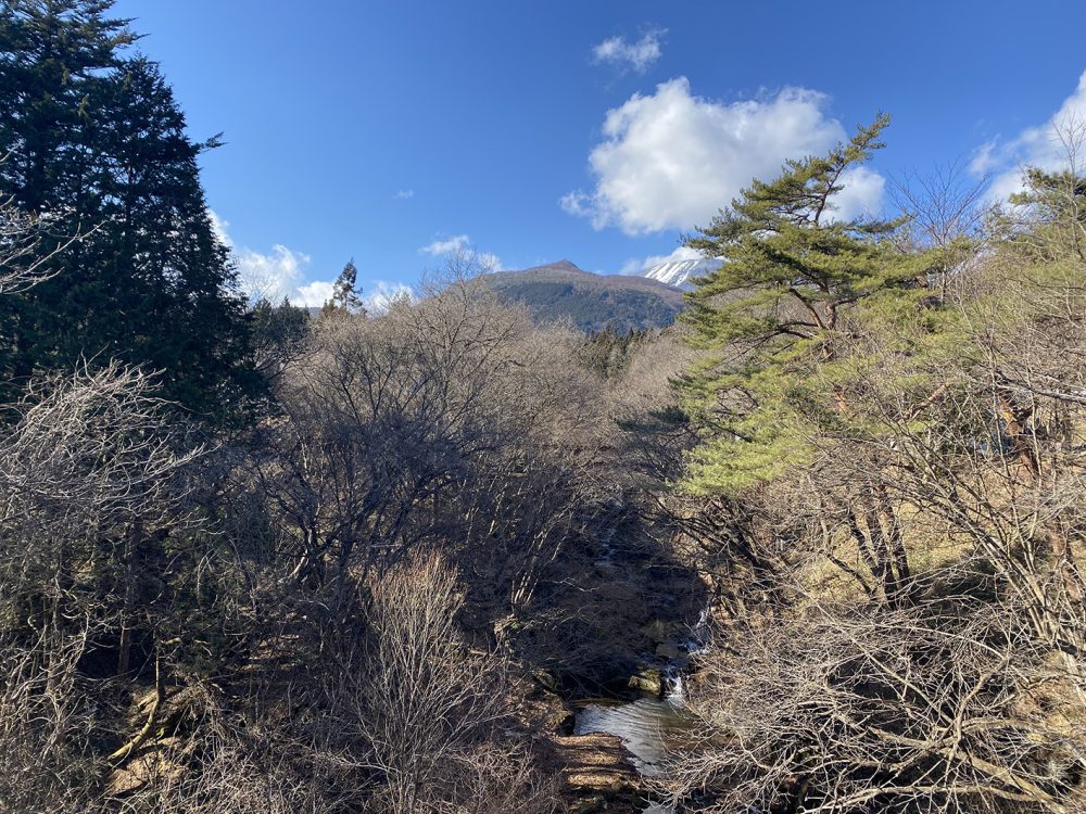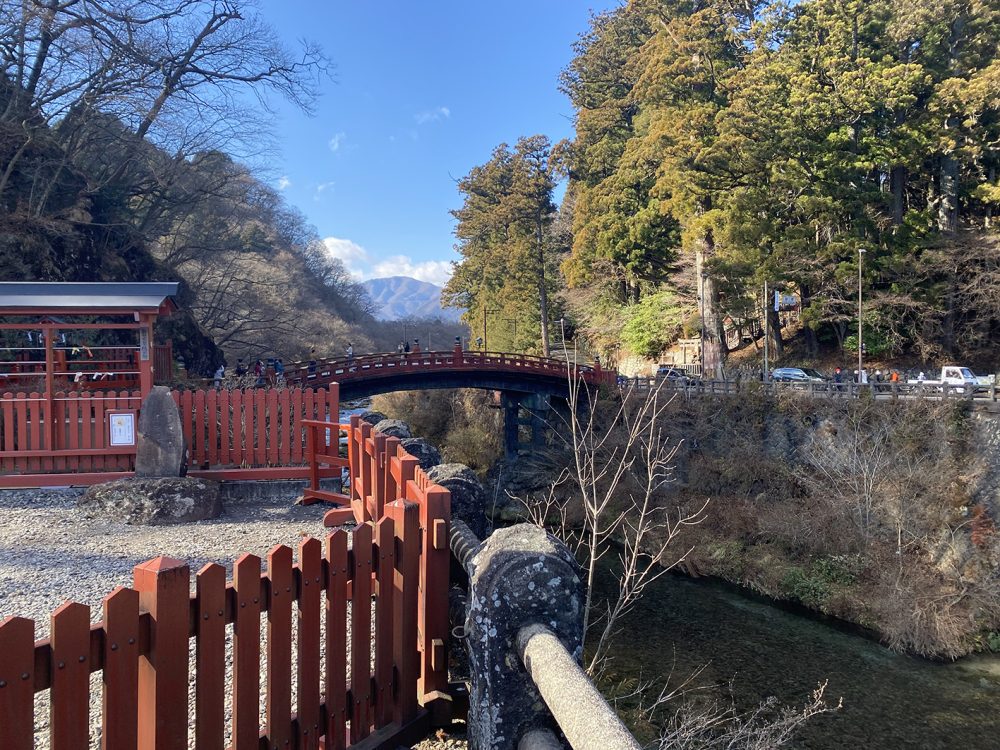 例えば、聖地への入り口である「神橋(しんきょう)」の手前。かつて電車が大きく右へ曲がっていた鉄道橋の橋脚が今も遺構が静かに佇んでいます。
